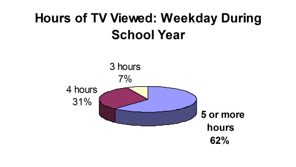 Fifty-five percent felt drained and out of touch with what was around them.  Twelve percent felt antsy.  Despite the negative feelings that come from watching television for an extended period of time, 100% of students eighteen and older claim to watch three or more hours of TV each weekday evening during their school year.  This is after sitting in a classroom for over six hours during the day.  Sixty-two percent watch five or more hours… nearly as much time as they had spent in school that day.